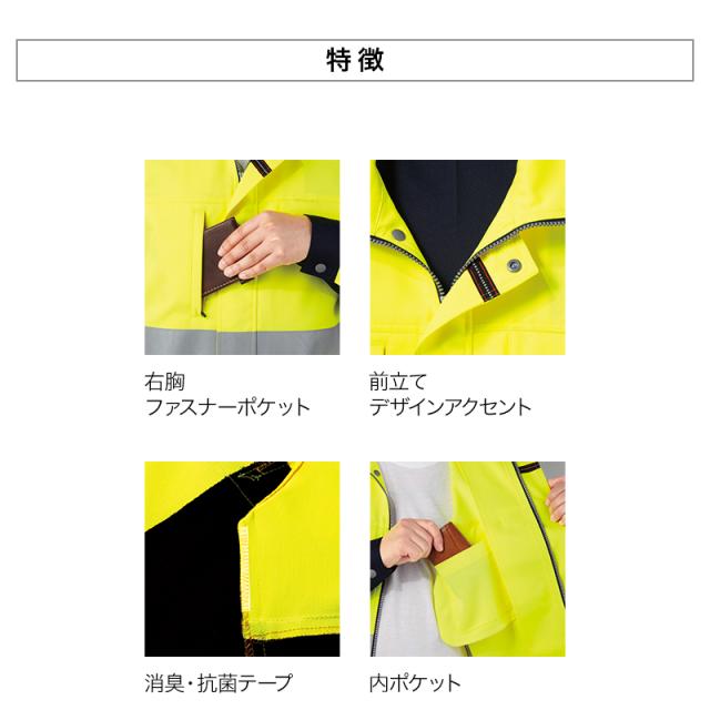 薄暮や夜間作業時の視認性を高めることで。着用者の安全性を考慮した一着。