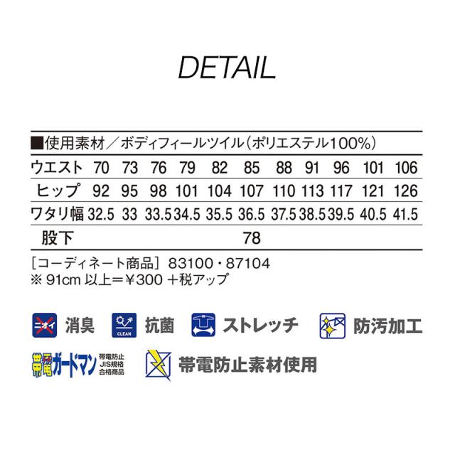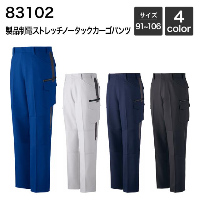 製品制電ストレッチノータックカーゴパンツ (秋冬) 自重堂 JICHODO 83102 (ポリエステル100%) 91〜106
