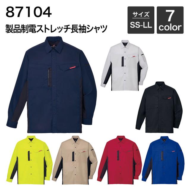 男女兼用 製品制電ストレッチ長袖シャツ [年間(定番)] 自重堂 JICHODO 87104 (ポリエステル95%・綿5%) SS・S・M・L ・LL