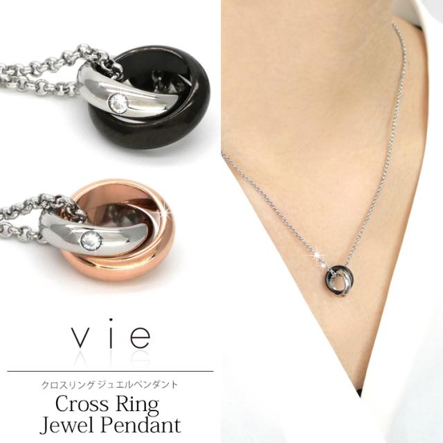 ステンレスネックレス vie クロスジュエルリングペンダント ネックレスチェーン付