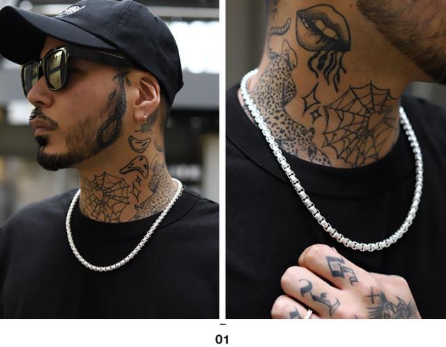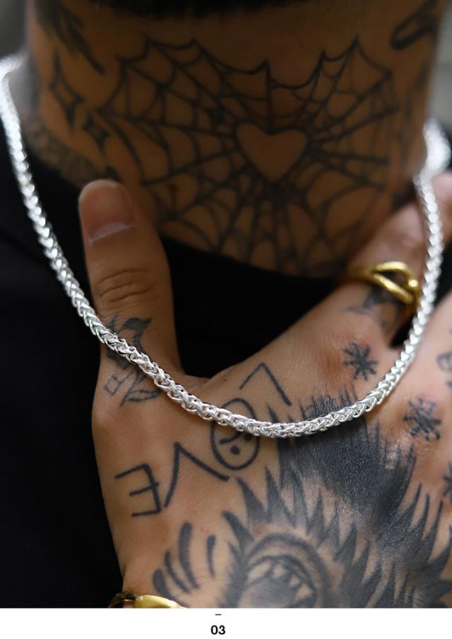 チェーン先端に、すべての運気やエネルギーを司るといわれている龍(ドラゴンヘッド)を配置し、ネックレス部分には立体的でボリュームあるターラントチェーン(カラー1はベネチアンチェーン)を採用した西海岸系デザイン。サイズは、全3種類。