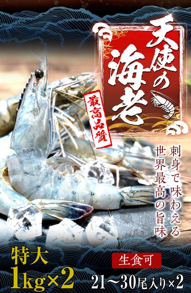 魚奏 天使の海老 冷凍 特大サイズ 2kg 1kg×2パック 送料無料 世界最高品質 有頭 刺身 生食 ギフト 在宅 BBQ バーベキュー