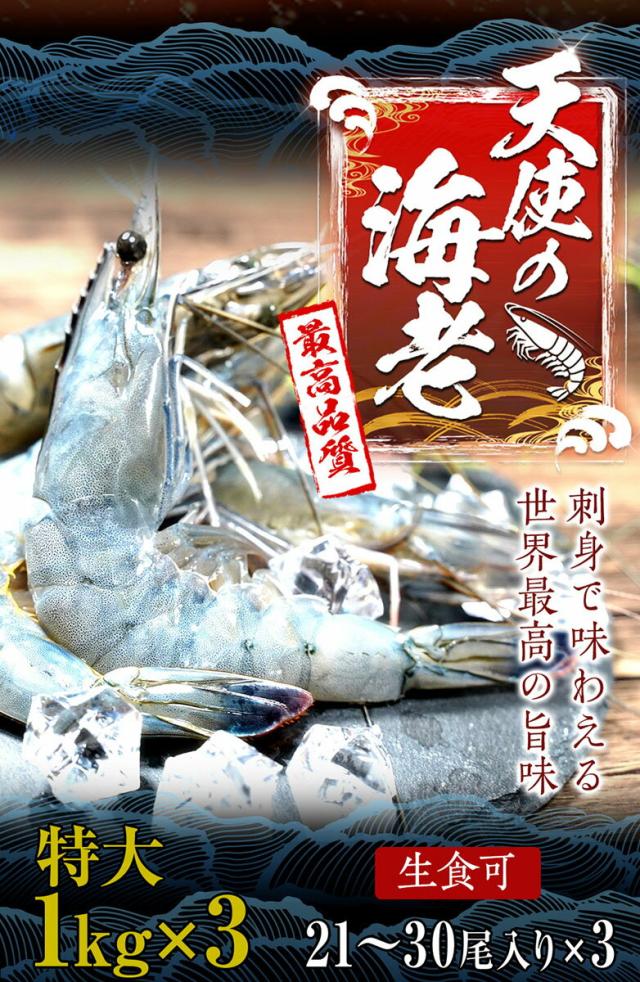 魚奏 天使の海老 冷凍 特大サイズ 3kg 1kg×3パック 送料無料 世界最高品質 有頭 刺身 生食 業務用 BBQ バーベキュー