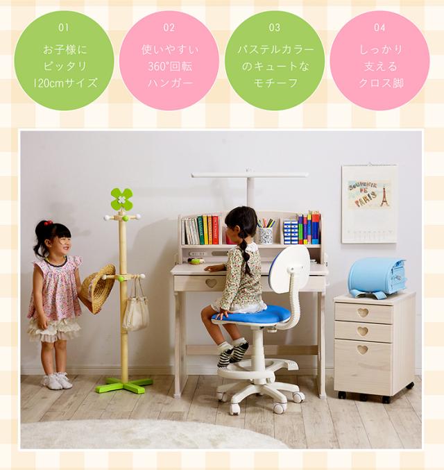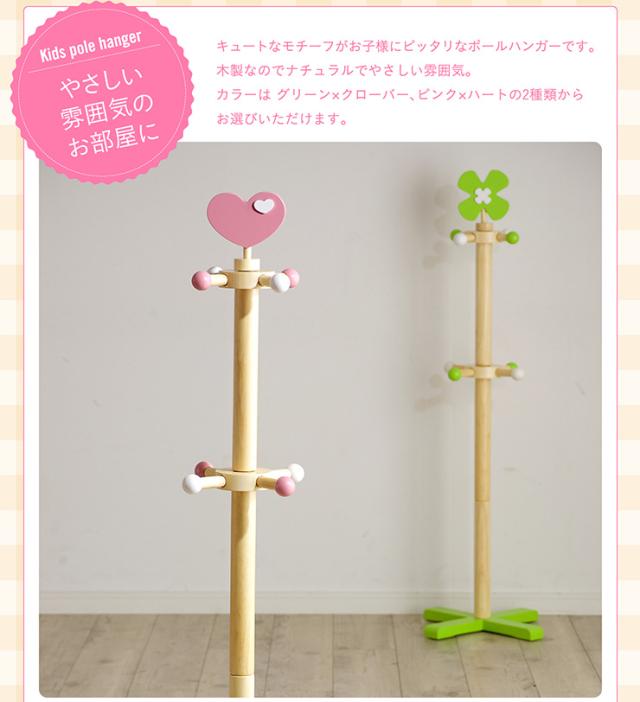 【子供部屋にピッタリ高さ約120cm】キッズポールハンガー クローバー ハート ジュニアハンガー ハンガー ハンガーポール ポールハンガー コートハンガー 回転ハンガー 収納家具 キッズルーム