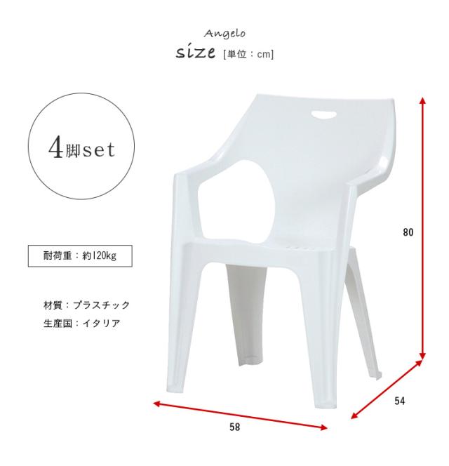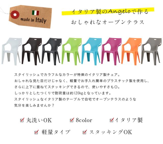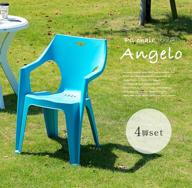 【イタリア製】ガーデンチェア 4脚 Angelo(アンジェロ) 8色対応 ガーデン チェア チェアー ガーデンチェアー 椅子 ガーデンファニチャー 庭 テラス ベランダ 屋外 アウトドア プラスチック 軽量 おしゃれ