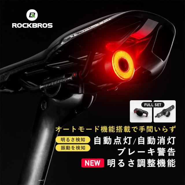 自転車 テールライト 自動 点灯 消灯 明るさ調整 ブレーキ警告 選べるマウント サドル シートポスト LED 赤 USB充電 防水 ロックブロス ROCKBROS