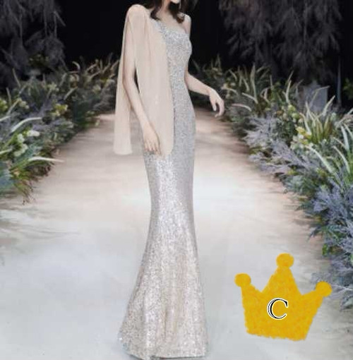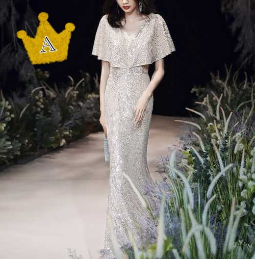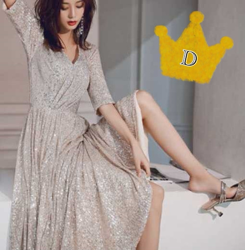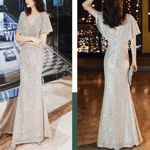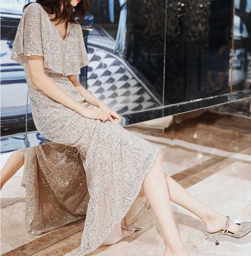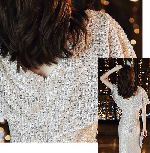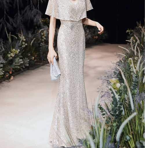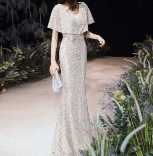 スパンコールが煌びやかな歩くたびにキラキラ輝くパーティードレス。
