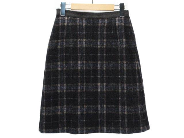 【中古】ニューヨーカー NEWYORKER BLUE スカート フレア チェック ウール M 黒 ブラック レディース