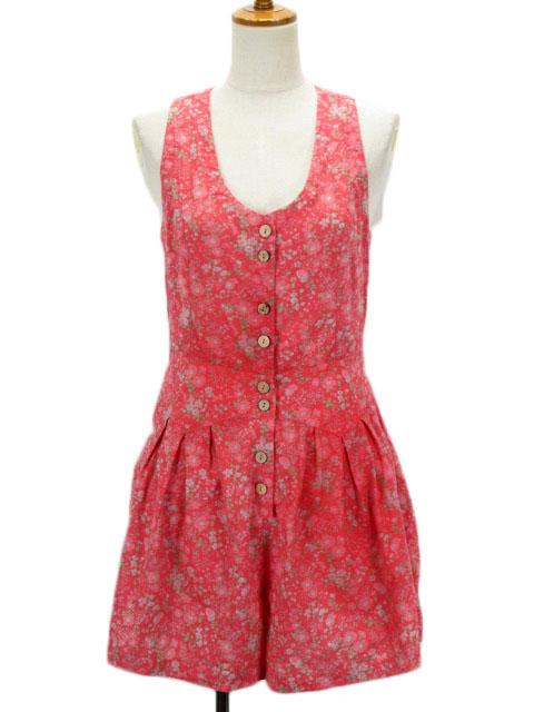 【中古】ミークチュール me couture オールインワン サロペット ショートパンツ 花柄 2 赤 レッド レディース