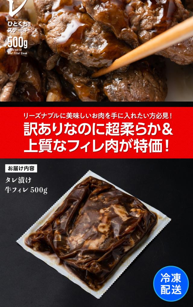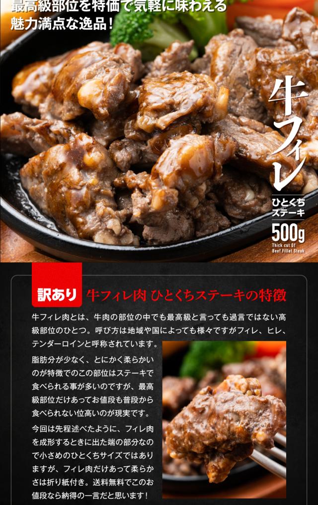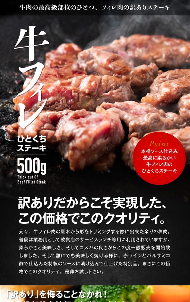 訳あり ステーキ 牛ヒレ ひとくちステーキ 500g 本格ソース仕込み 食品 肉 牛肉 焼肉 焼き肉 フィレ肉 わけあり
