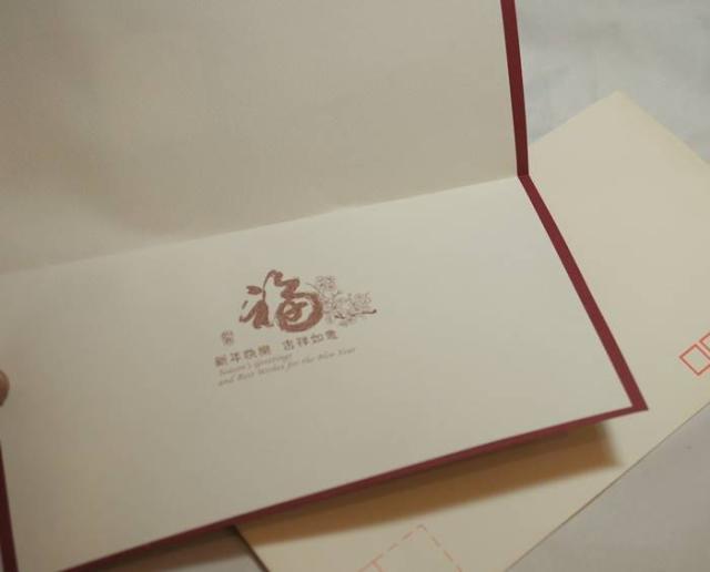 ★中のメッセージカードは差し込み式で、「福 新年快楽 吉祥如意」と書かれています。