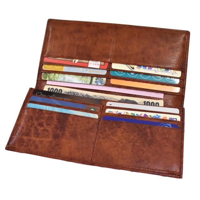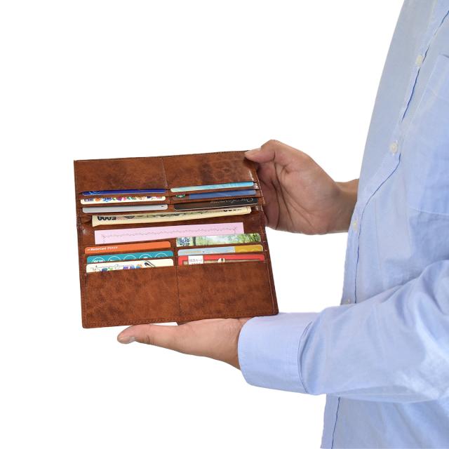 カードと紙幣を収納する小銭入れのないシンプルなアイテム。カードポケット×12、札入れ×2となっており、札入れの1つはマチ付きのため、たくさんの紙幣を収納できます。