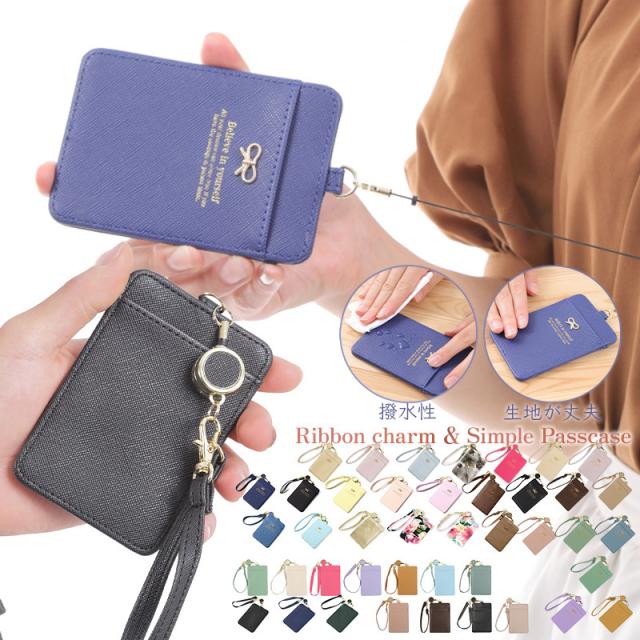 送料無料 リール付きパスケース リール付き リールパスケース リール付きパステルパスケース リボン チャーム 定期入れ レディース ストラップ付き 可愛い カード入れ 新品 便利 通勤 通学 安心 防犯 プレゼント ギフト 合皮革