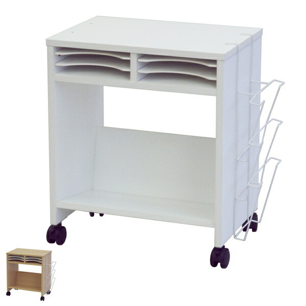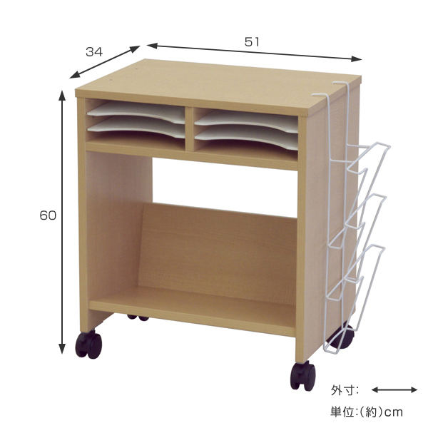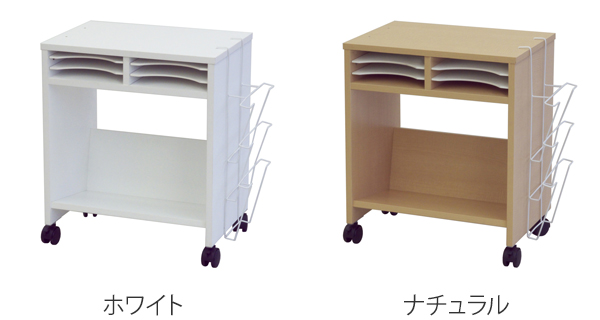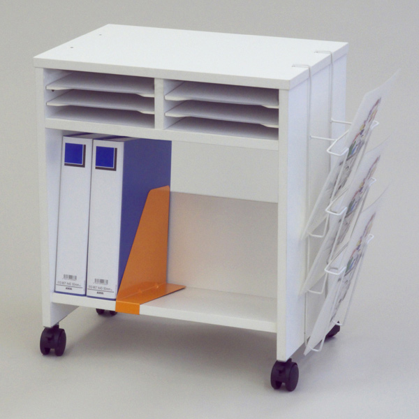 小分け棚と側面ラックで書類を分類できるワゴン