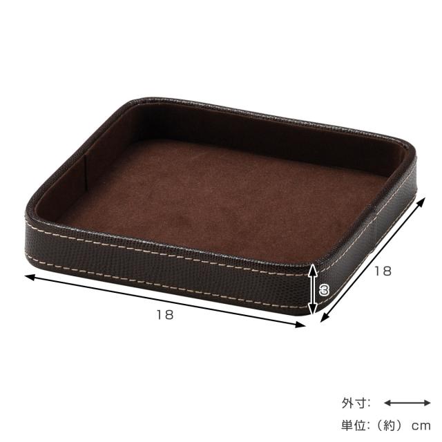 小物トレー 正方形 トレー レザー風 キャッシュトレー 幅18×奥行18×高さ3cm ( 小物入れ トレイ 卓上トレー アクセサリートレイ ペン めがね メガネ置き 腕時計 ペン置き メガネ 雑貨 インテリア おしゃれ )