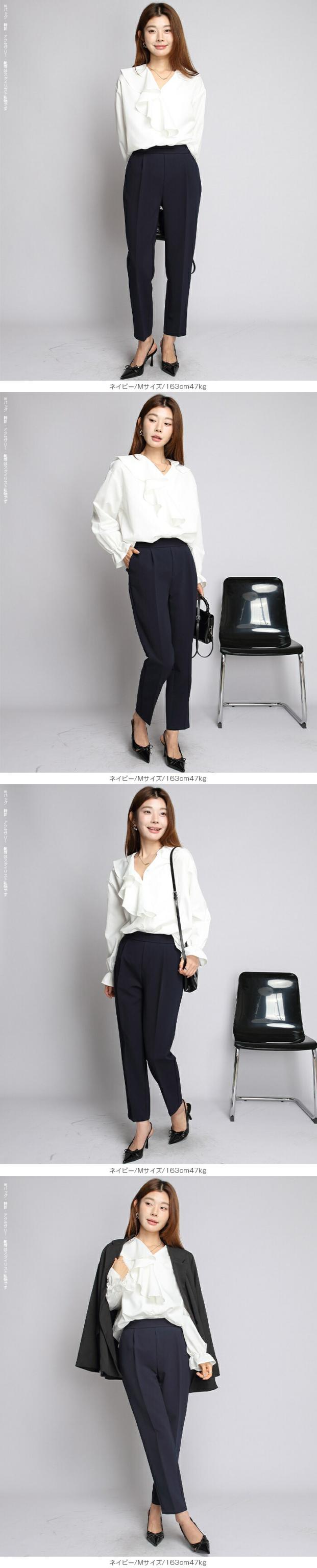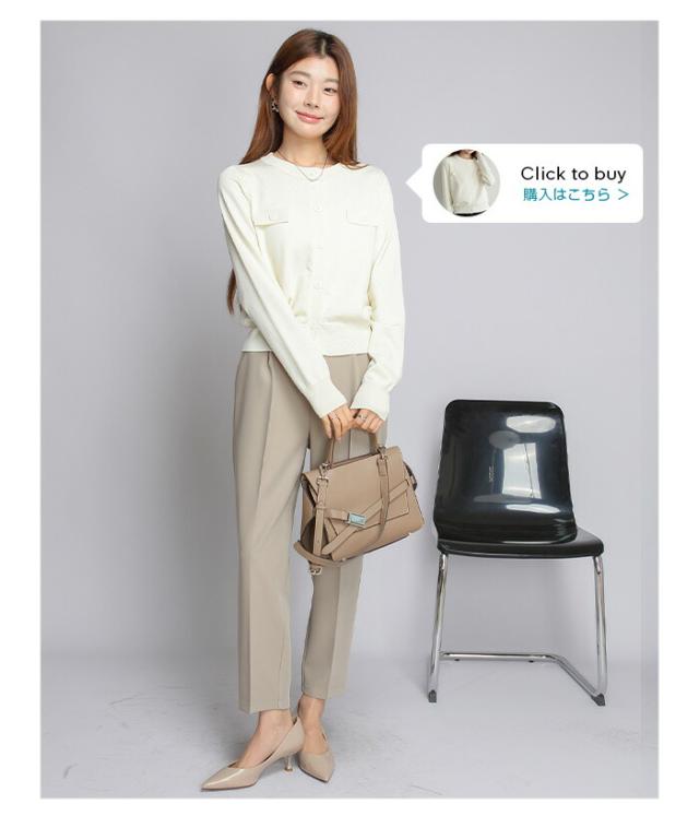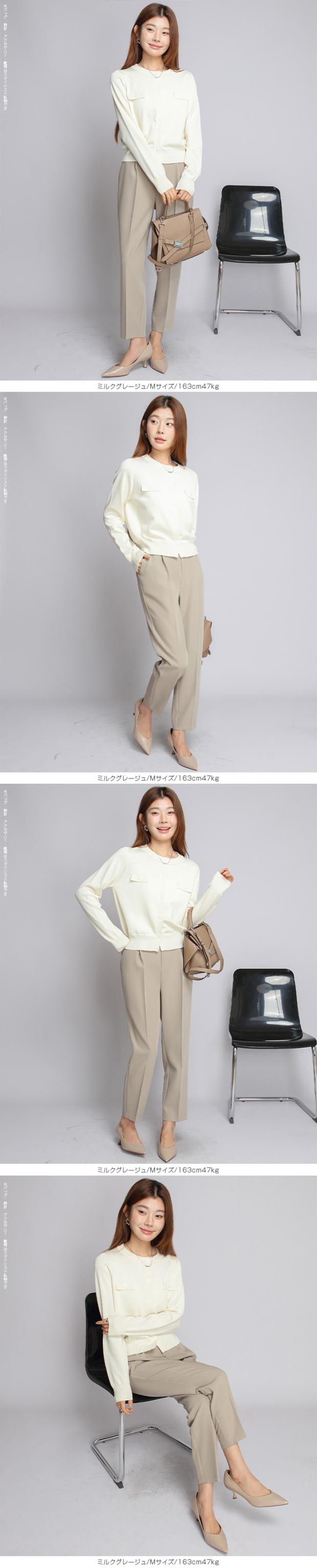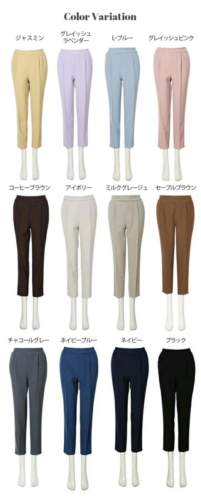 【 センタープレステーパードパンツ 】 きちんと感がありながらも着心地楽ちんなテーパードパンツ。 伸縮性と美脚ラインを兼ね備えた嬉しい1着です。 シワになりにくいツイル素材なので、デスクワークにも最適♪ センタープレス入りのクロップド丈で美脚魅せ効果も抜群です。 ベーシックカラーに加えて、春らしいペールトーンカラーもラインナップ。 スニーカーやローファー合わせでマニッシュに、パンプス合わせでフェミニンに。 デイリーにもオフィスやセミフォーマルなシーンにもオススメです! 《商品ポイント》 ・センタープレスで脚長見え効果 ・テーパードシルエットで美脚ラインを演出 ・選べる着丈(通常/低身長サイズ) ・すっきりウエスト設計でトップスインもきれい ・ストレッチ性があり動きやすい ・オンオフ使える万能デザイン ・シワになりにくくお手入れ簡単 《デザイン・シルエット》 ・裾に向かって細くなるテーパードライン ・センタープレスで縦ラインを強調 ・腰まわりは程よくゆとりを持たせた設計 ・足首が見える丈感で抜け感をプラス ・全体をすっきり見せる計算されたバランス 《コーディネート提案》 ・ブラウス合わせで通勤・オフィススタイルに ・ニット合わせで大人カジュアルに ・Tシャツ合わせで抜け感のある休日コーデ ・ジャケットとセットでよりきれいめに ・パンプスで上品に、スニーカーでラフに着回し可能 《サイズ・カラーバリエーション》 サイズ:SCサイズ / Sサイズ / MCサイズ / Mサイズ / LCサイズ / Lサイズ ・カラー:L・ブルー / アイボリー / グレイッシュピンク / グレイッシュラベンダー / コーヒーブラウン / ジャスミン / セーブルブラウン / チャコールグレー / ネイビー / ネイビーブルー / ブラック / ミルクグレージュ 《素材・機能性》 ・素材:ポリエステル97%、ポリウレタン3% ・透け感:ほとんど透けない ・伸縮性:若干あり ・厚み:普通 |
