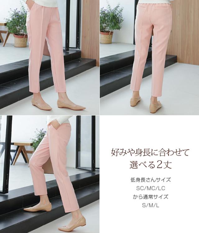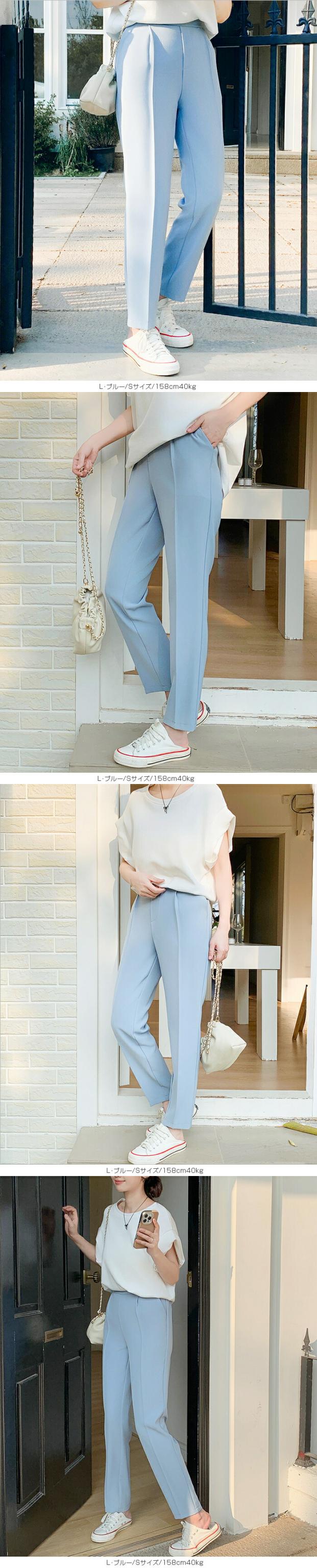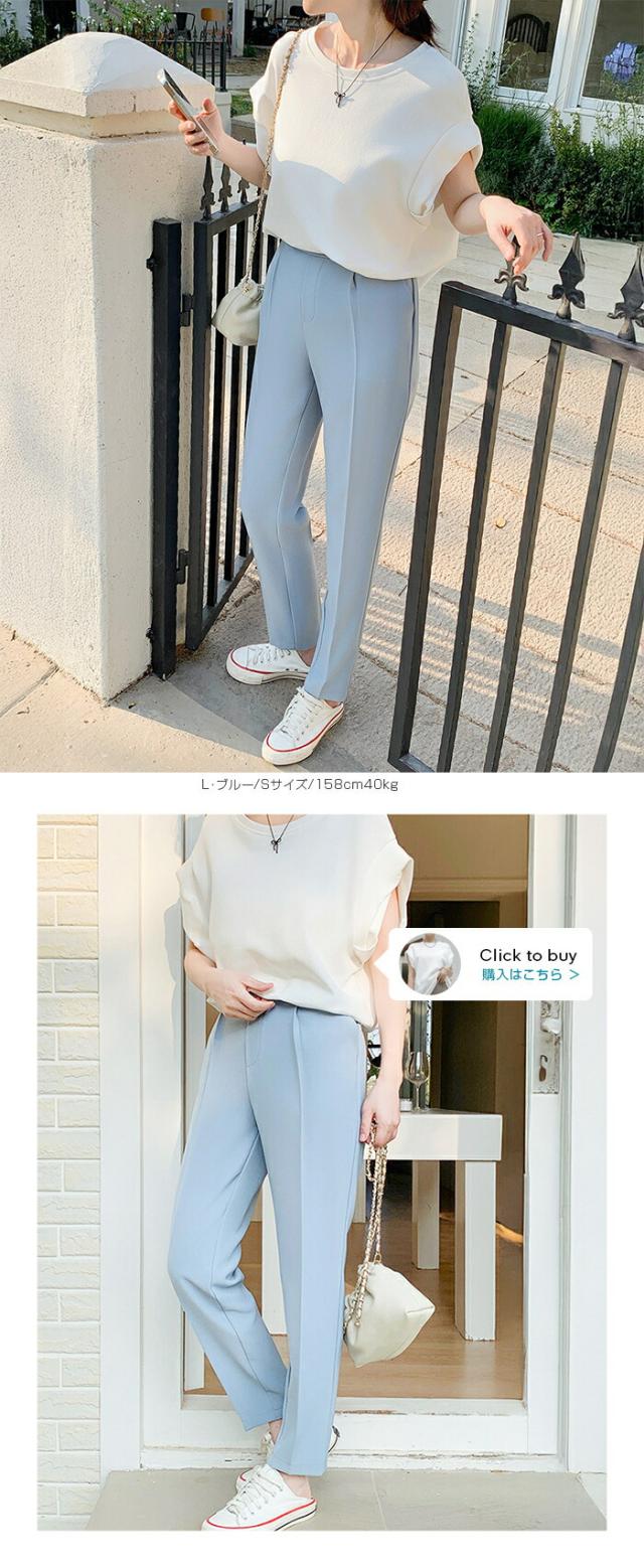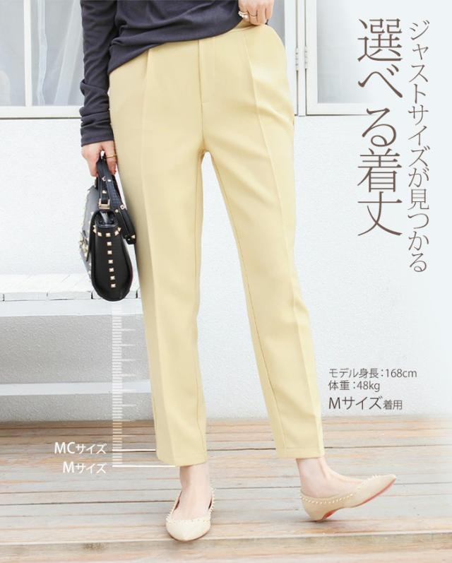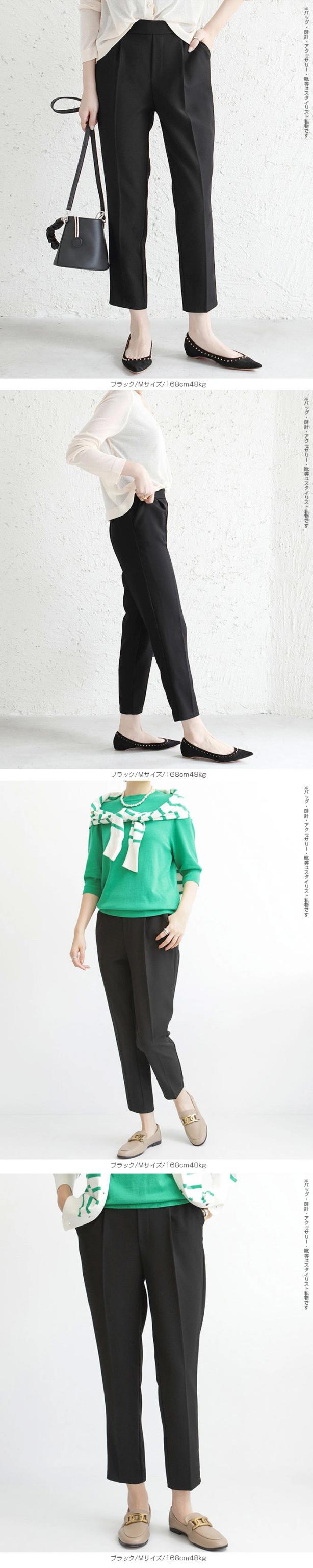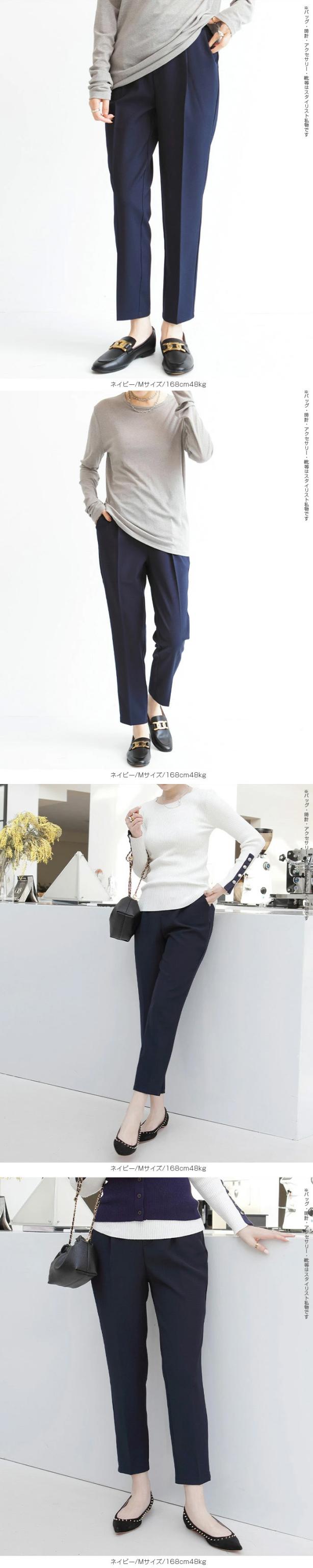 センタープレス入りのクロップド丈で美脚効果も抜群です。