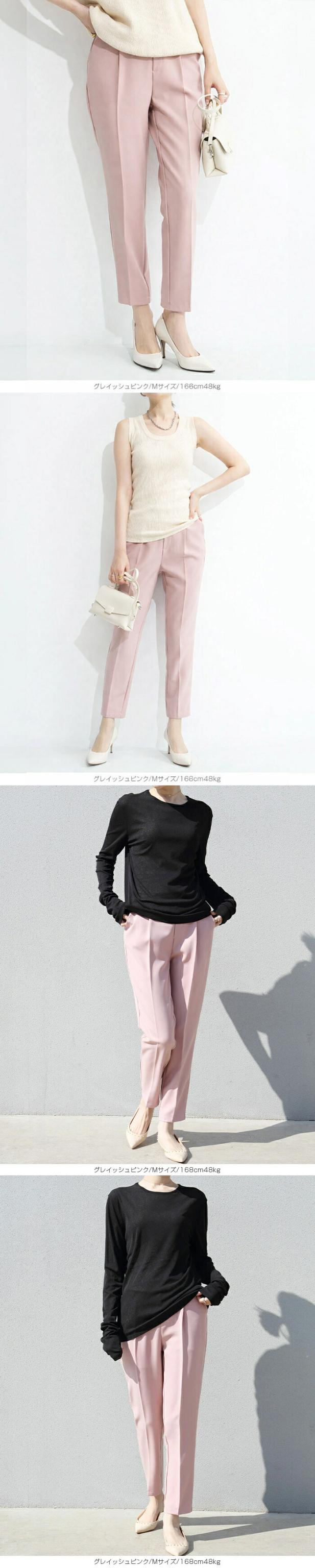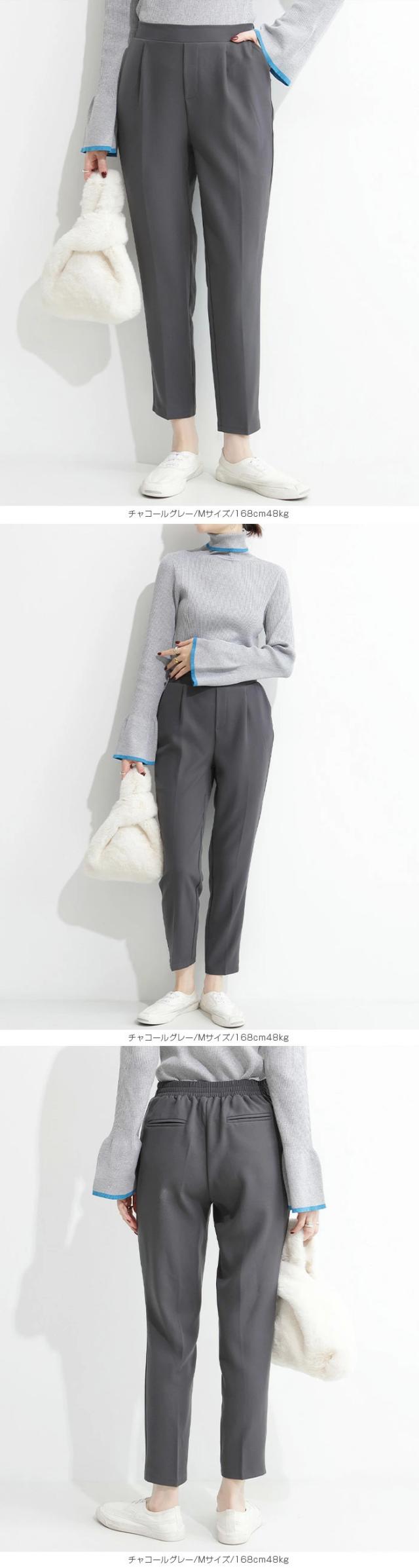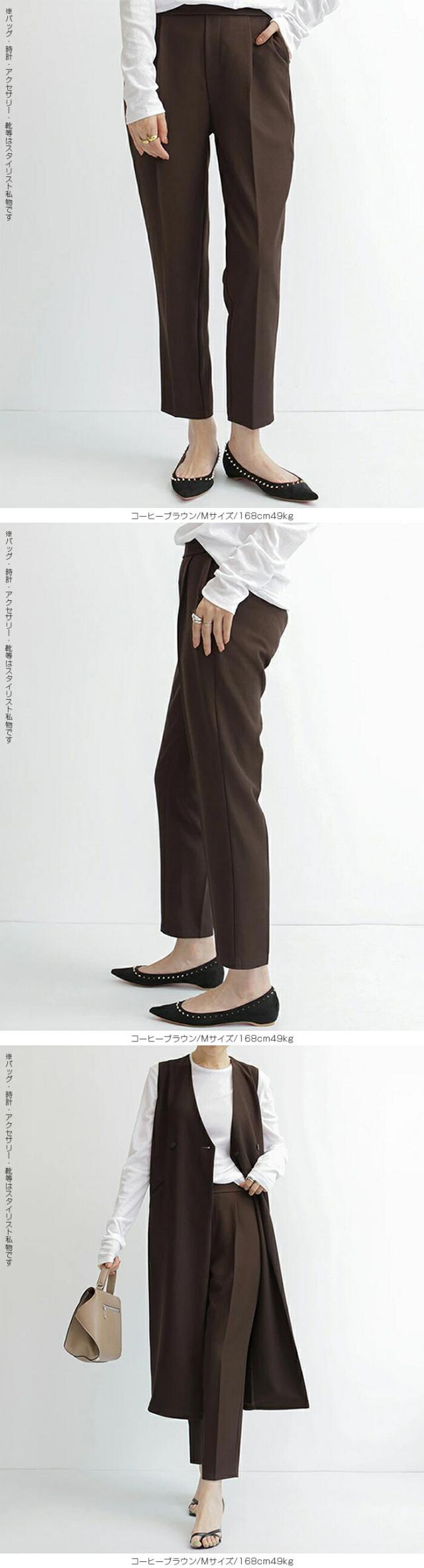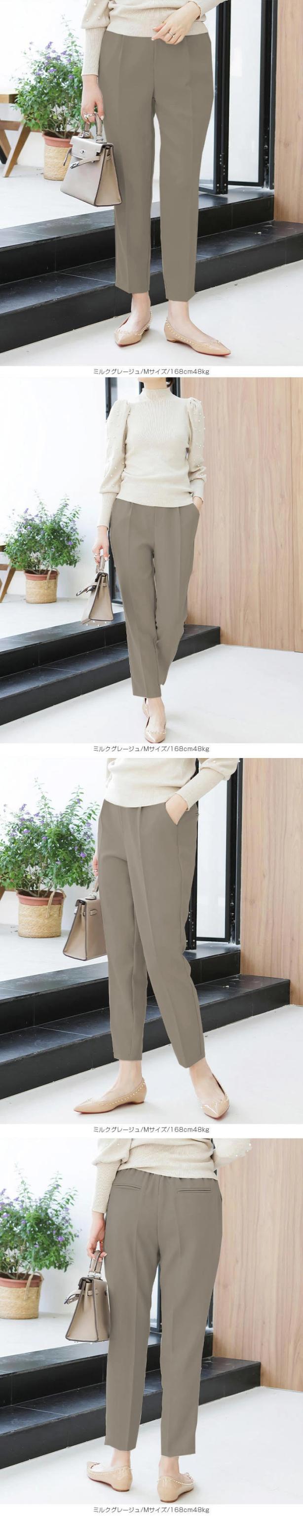 センタープレス入りのクロップド丈で美脚効果も抜群です。