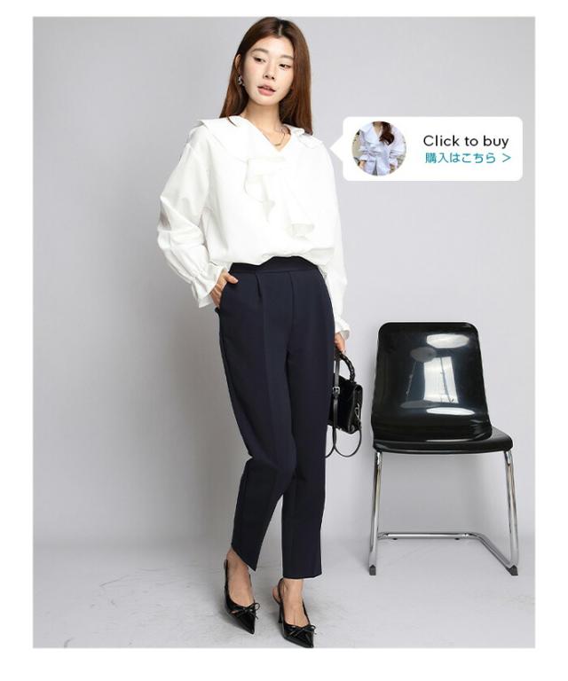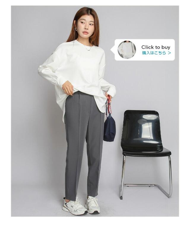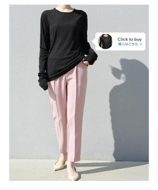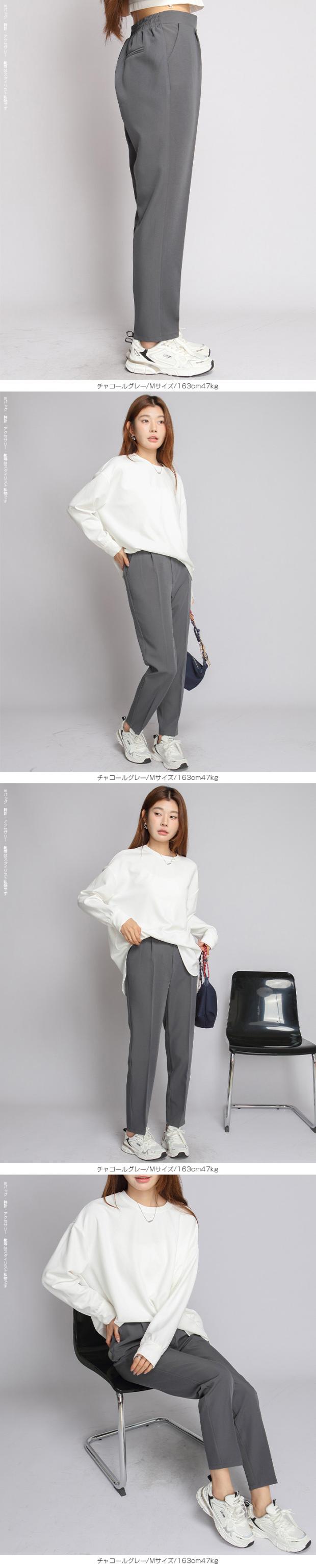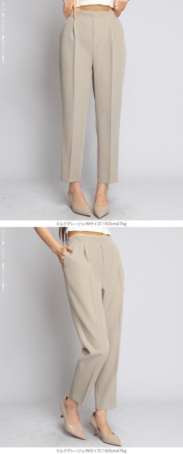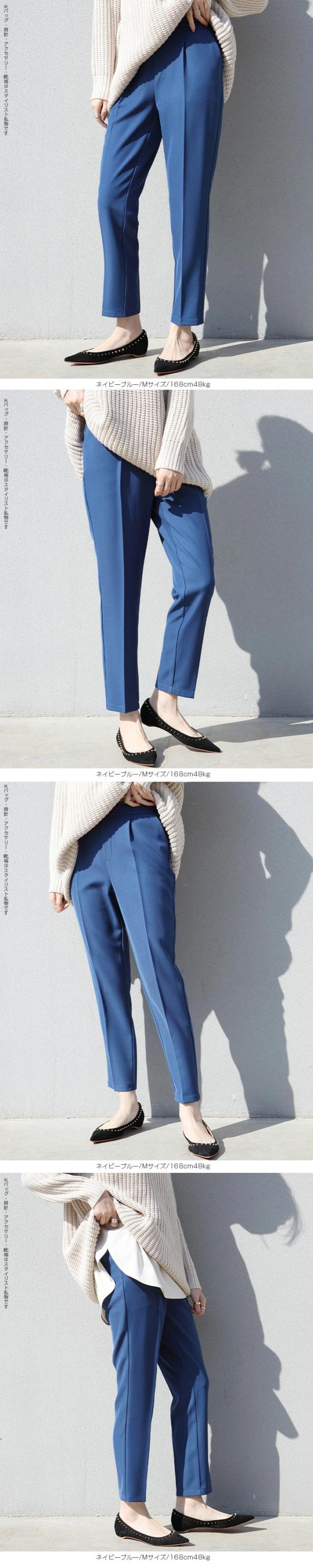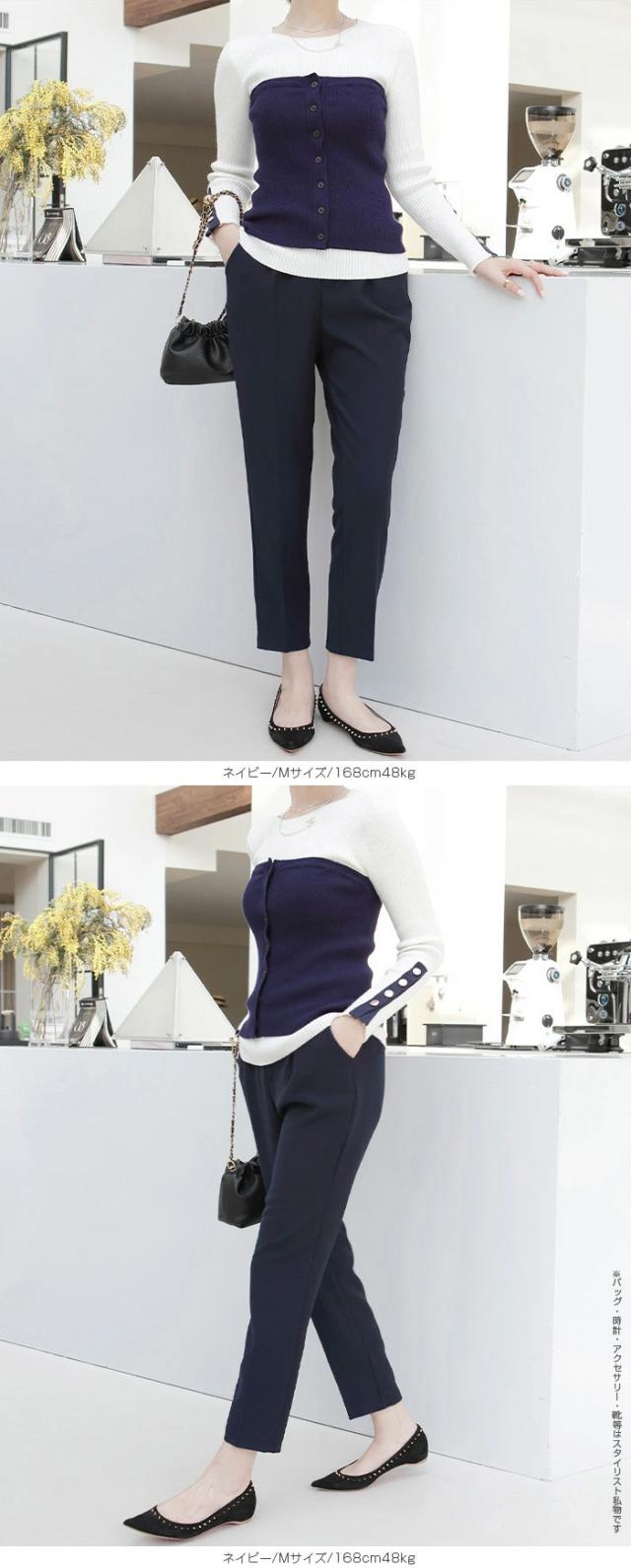 センタープレス入りのクロップド丈で美脚効果も抜群です。