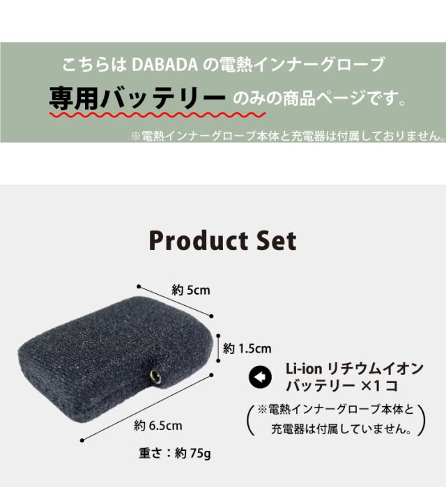 DABADA(ダバダ) 【メール便】電熱インナーグローブ専用バッテリー 1個 スペアバッテリー 交換用バッテリー 予備バッテリー アウトドア 送料無料