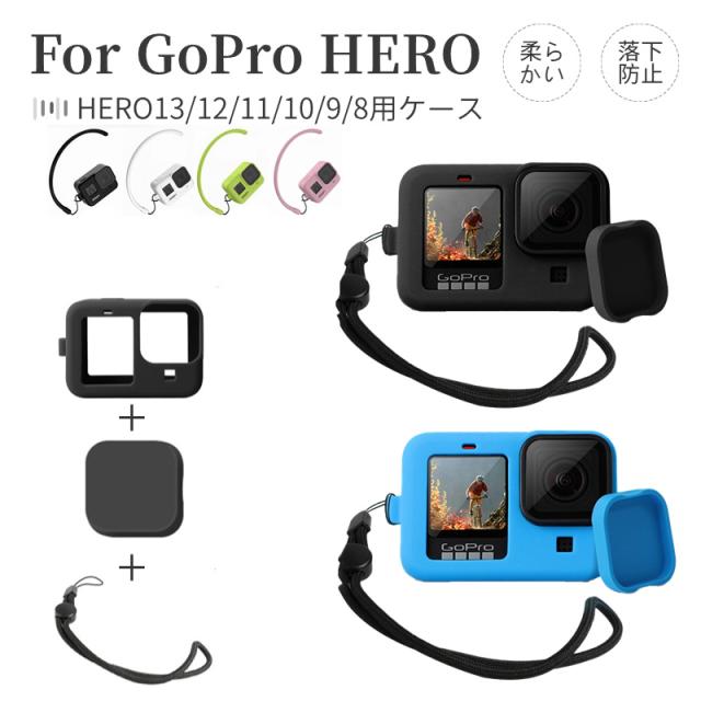 For GoPro HERO 13 12 11 10 Black 保護ケース HERO9 8 Black用シリコン保護カバー 柔らかい ソフト軽量 ハンド式ストラップ付属 アクセサリー キズ防止全面保護【J349】