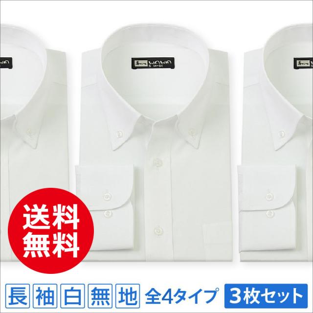 長袖 白無地 3枚セット メンズ ワイシャツ レギュラーカラー ボタンダウン 4種類から選べる スタンダード フォーマル 礼服 白シャツ 形態安定 送料無料