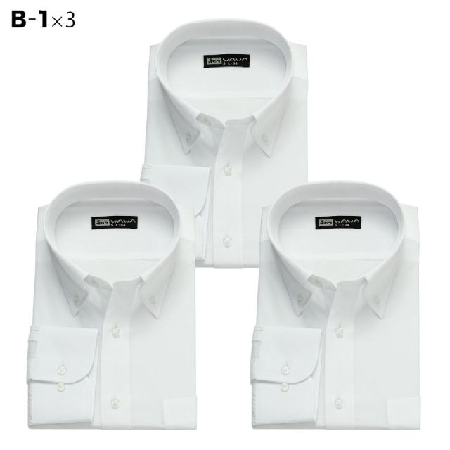 長袖 白無地 3枚セット メンズ ワイシャツ レギュラーカラー ボタンダウン 4種類から選べる スタンダード フォーマル 礼服 白シャツ 形態安定 送料無料