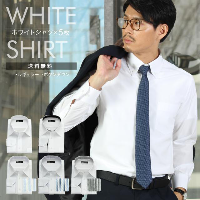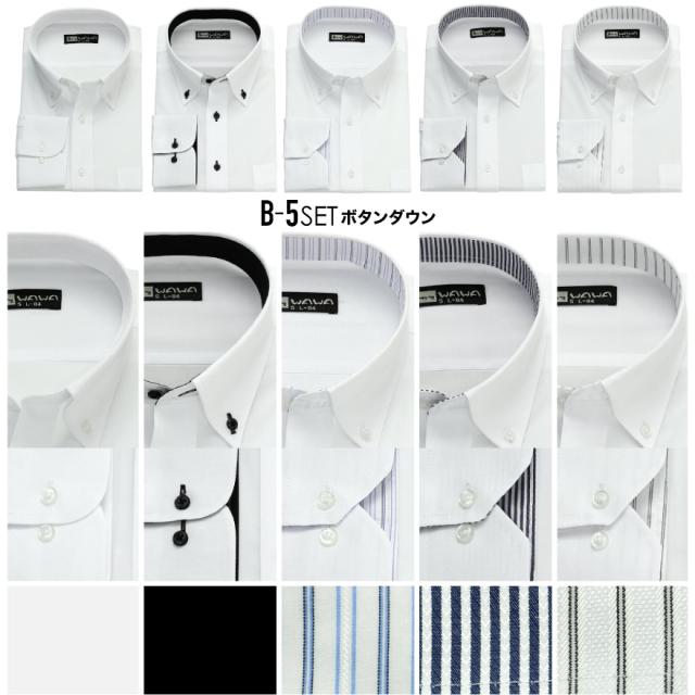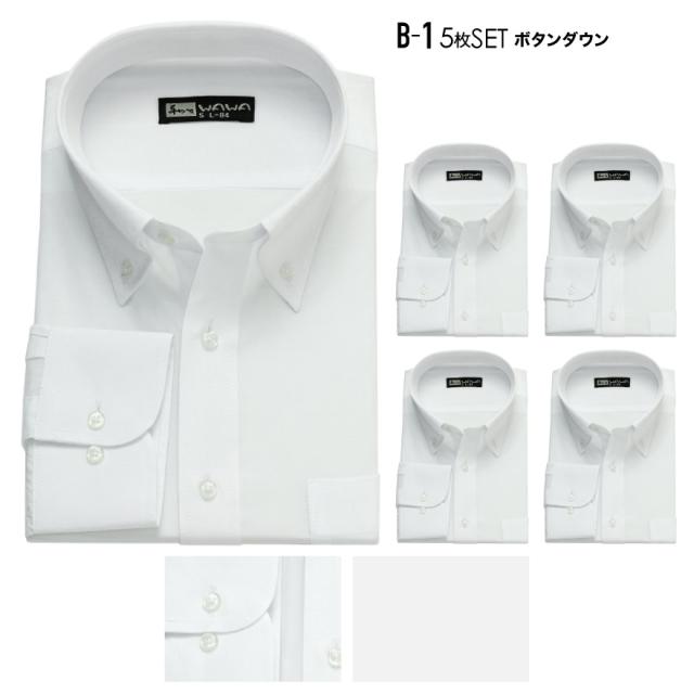 長袖 5枚セット 白無地 メンズ ワイシャツ レギュラーカラー ボタンダウン スリム 形態安定 標準体フォーマル ビジネス Yシャツ 送料無料