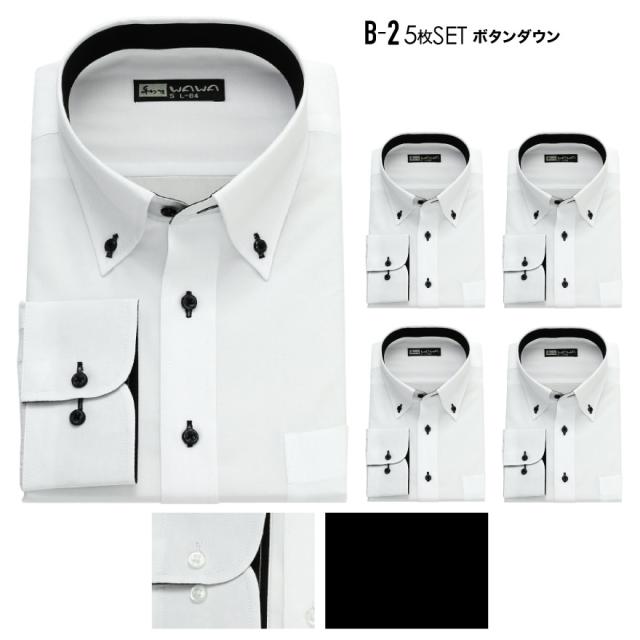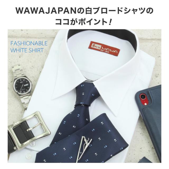 WAWAJAPANの白シャツ5枚セットは白無地ワイシャツだけでは無く、襟袖裏に柄生地を採用し白シャツの悩みでもある汚れが目立ちやすい事を軽減かつオシャレに仕上げております。