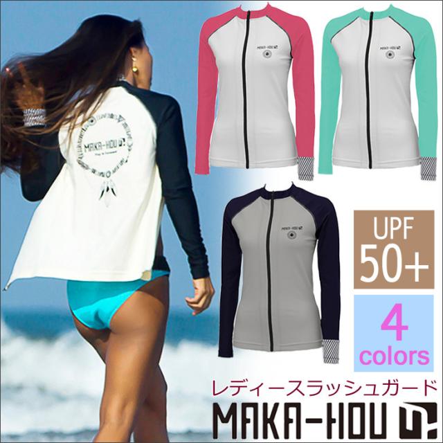 MAKA-HOU マカホー レディース ジップラッシュガード 長袖 品番 11W07/71S 2018年春夏モデル Zip Rash Gurad 日焼け対策/擦れ防止/UPF50+海・山・川・プールで日焼け止め/日焼け防止に最適 日本正規品