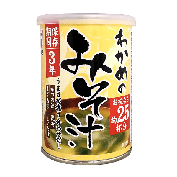 顆粒みそ(米みそ、かつお節粉末、昆布粉末、まぐろ節粉末、しいたけエキスパウダー)(国内製造)、乾燥わかめ、調味料(アミノ酸等)、(一部に大豆を含む)