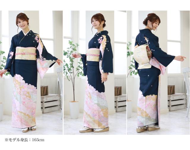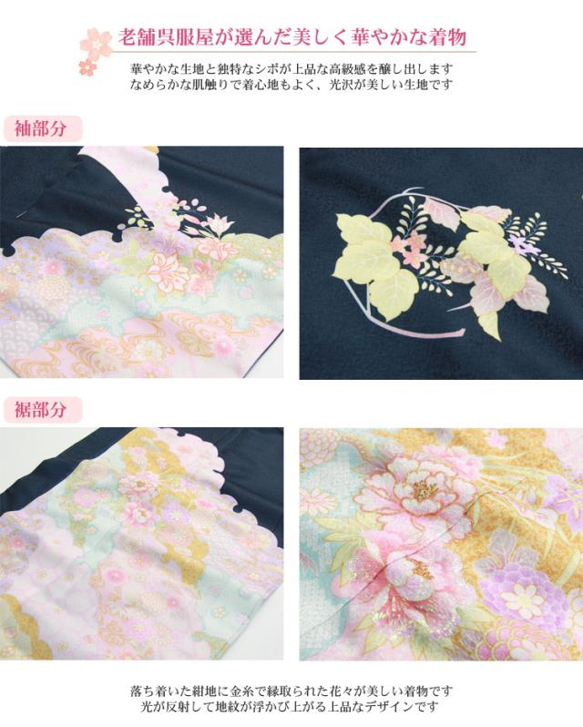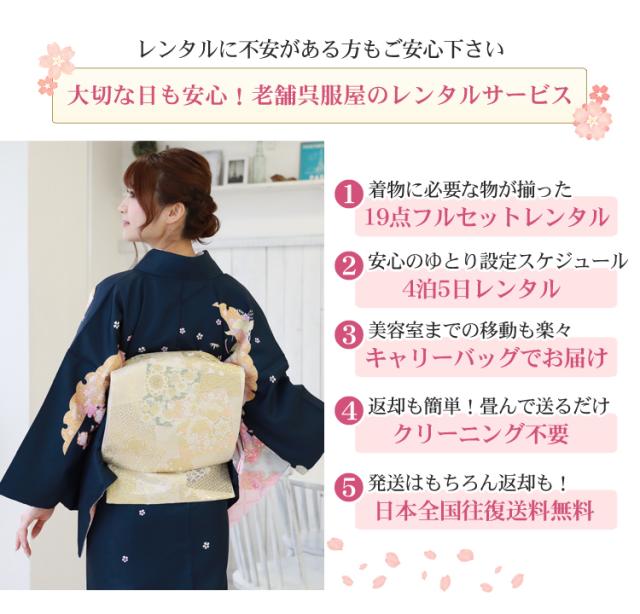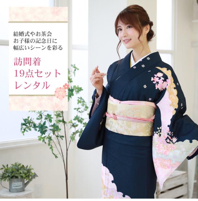 訪問着 レンタル 19点フルコーディネートレンタルセット「濃紺地に花柄と雪輪模様」結婚式 入学式 七五三 ママ