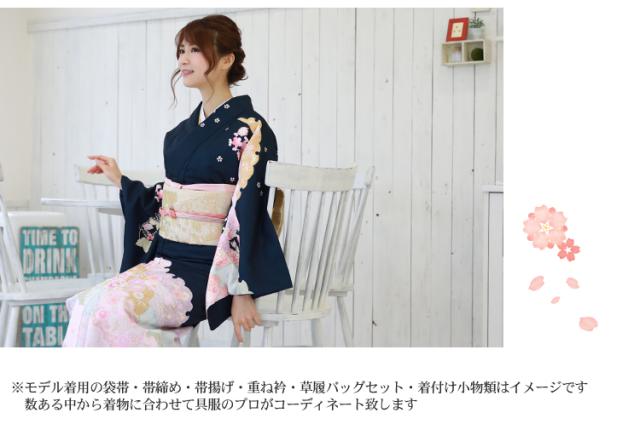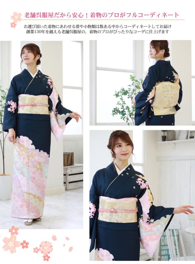 | ※モデル着用の袋帯・帯締め・帯揚げ・草履バッグ・小物類の色、デザインはイメージです。 数ある中から呉服のプロがコーディネートしてお届け致します。 | |||