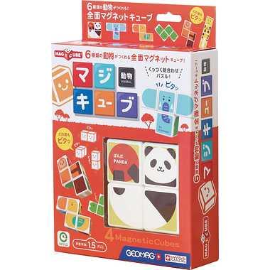 磁石でどの面もピタッとくっつく絵合わせパズル!4個のキューブを組み合わせて、6種類の絵柄が作れます。