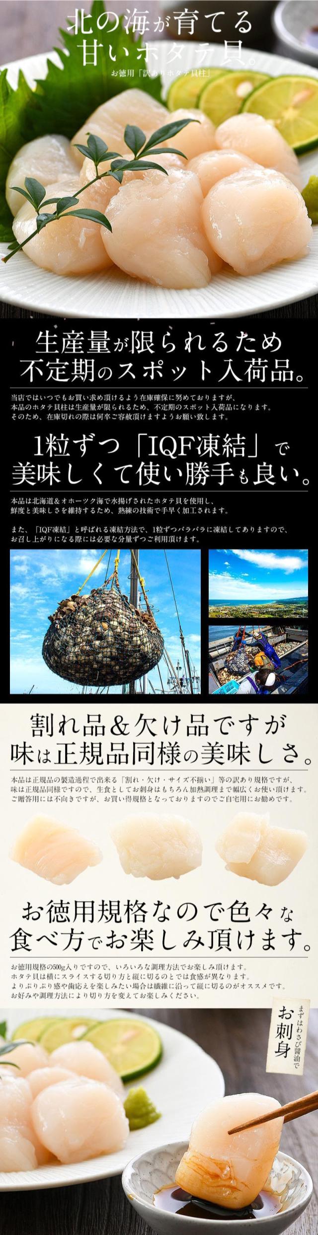 ホタテ 貝柱 500g 訳あり(割れ 欠け サイズ不揃い) ほたて貝柱 ホタテ貝柱 ほたて 帆立 緊急支援品 ギフト プレゼント お歳暮
