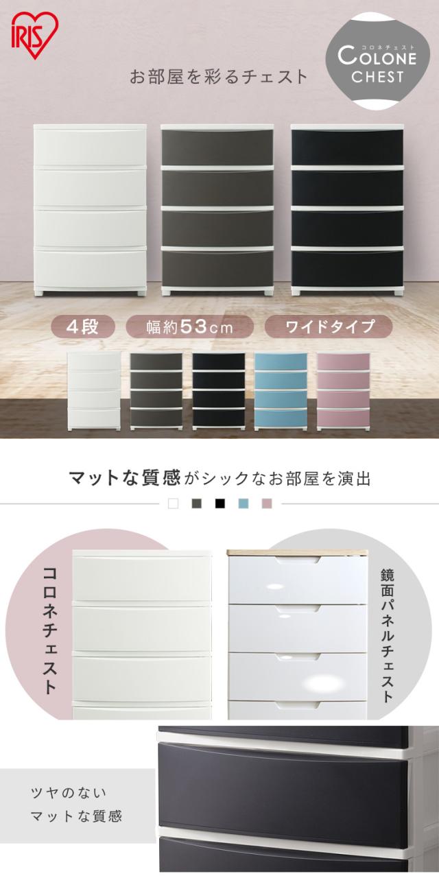 ★全品対象250円offクーポン★ チェスト 衣装ケース 4段 収納ケース 引き出し 押し入れ クローゼット 洋服タンス おしゃれ かわいい マット ワイド コロネチェスト アイリスオーヤマ CLN-544 * 新生活 インテリア