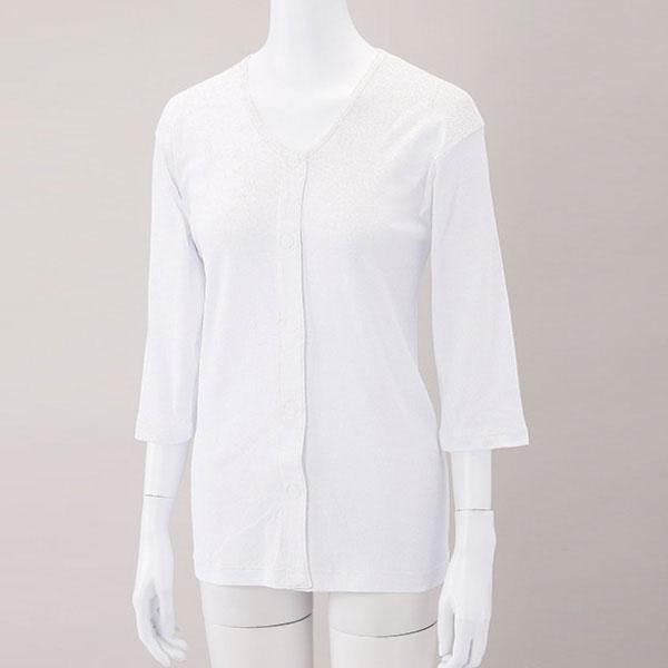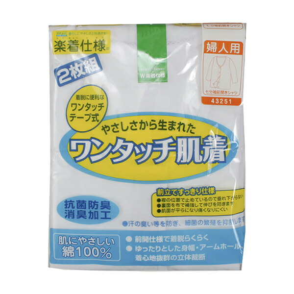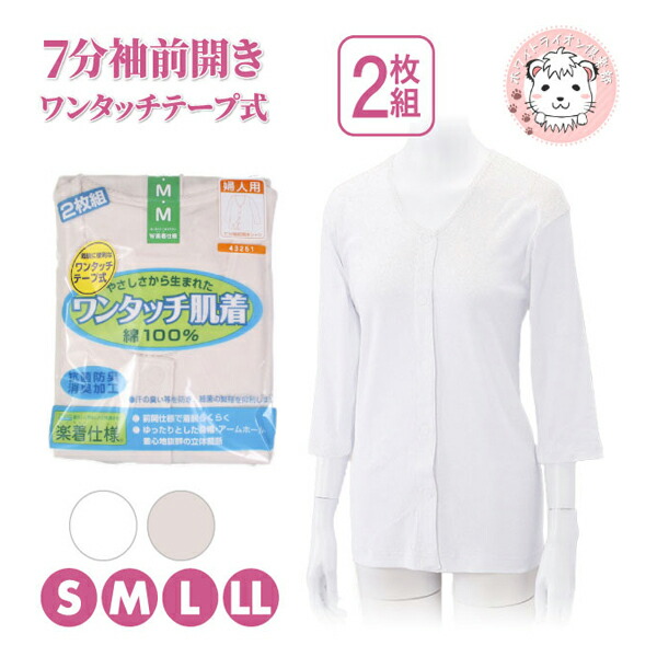 7分袖 前開きシャツ ワンタッチ肌着 ワンタッチテープ式 2枚組 抗菌防臭 消臭 綿100% S/M/L/LL | オールシーズン レディース 綿 介護インナー インナーシャツ 下着