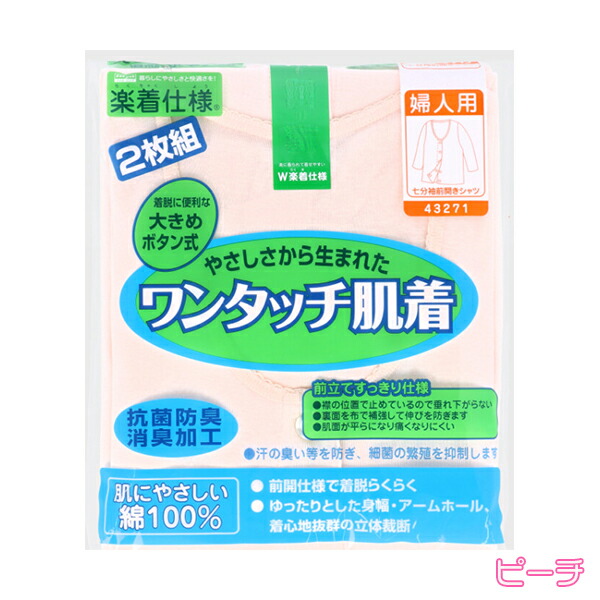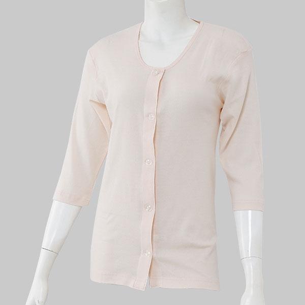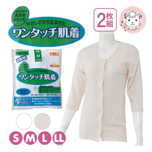 7分袖 前開きシャツ ワンタッチ肌着 大きめボタン式 2枚組 抗菌防臭 消臭 綿100% S/M/L/LL | オールシーズン レディース 綿 介護インナー インナーシャツ 下着