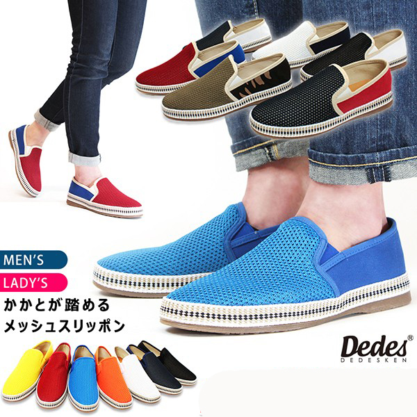 メッシュ スリッポン シューズ 5166 ビビッドカラー 23-27cm カジュアル バブーシュ 男女兼用 レディース メンズ ユニセックス 通気性 かかと 踏める ブラック ホワイト ネイビー 黒 白 赤 スニーカー 幅広 ゆったり 軽量 涼しい 靴