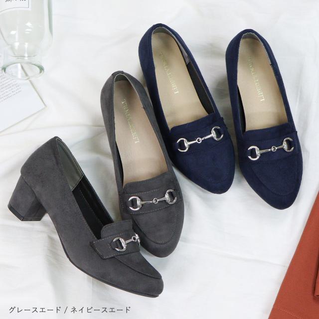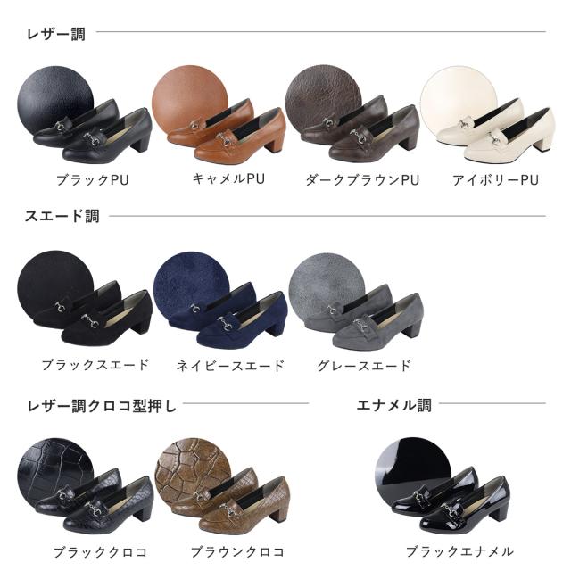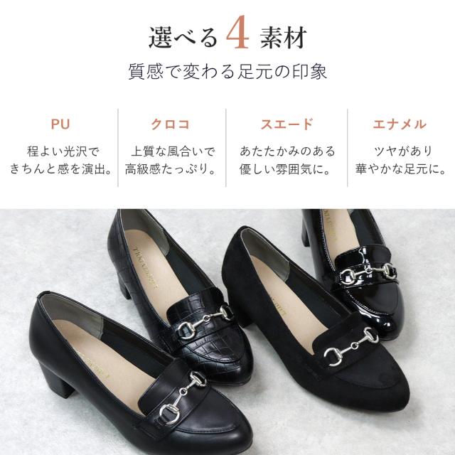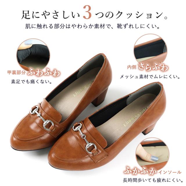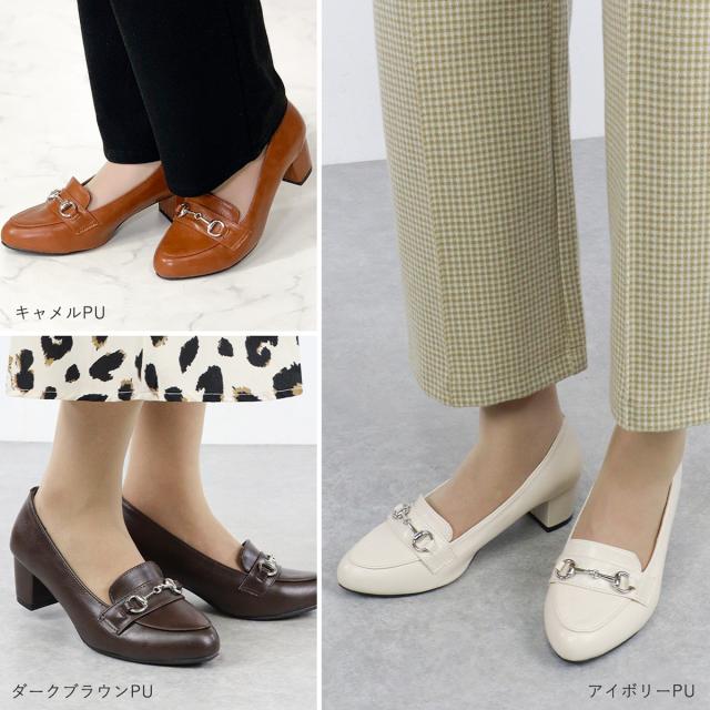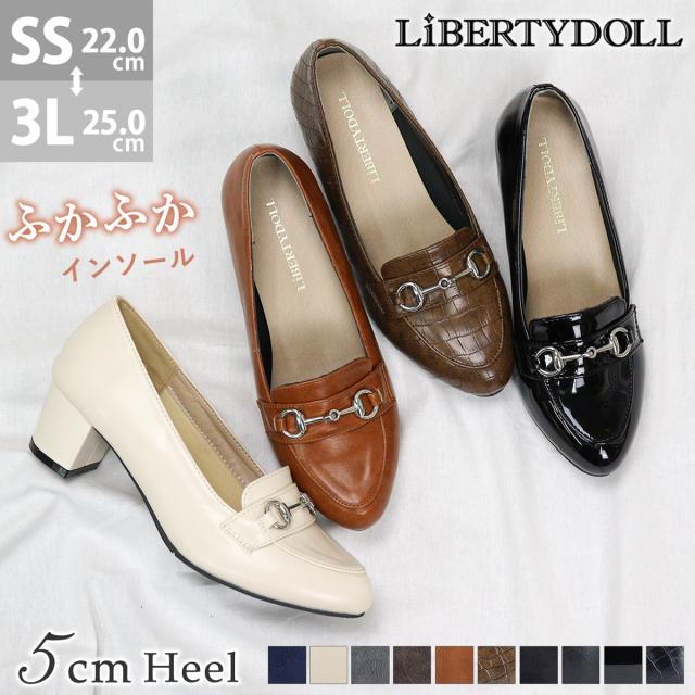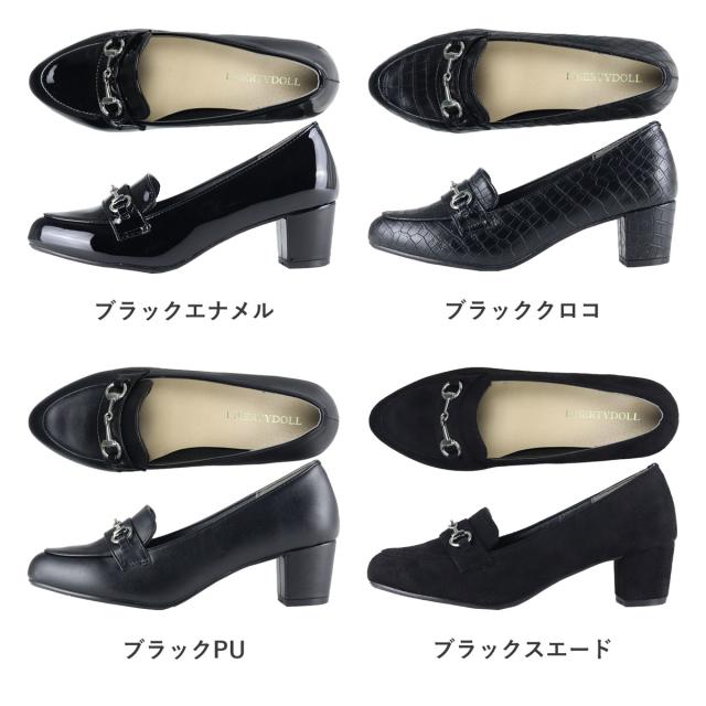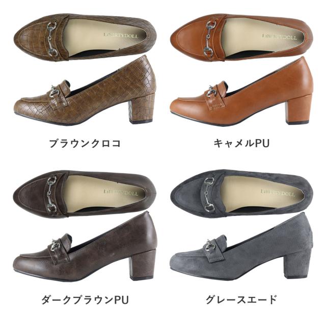 ローファー レディース 5cmヒール 痛くない 柔らかい ビット 革靴 おしゃれ パンプス No.3019 22.0-25.0cm リバティードール 黒 ブラック 茶 ブラウン 学生 通勤 通学 送料無料 パンプス 合成皮革 エナメル スエード スウェード 3018set