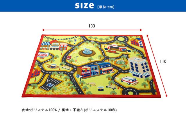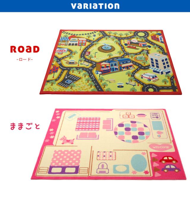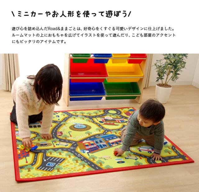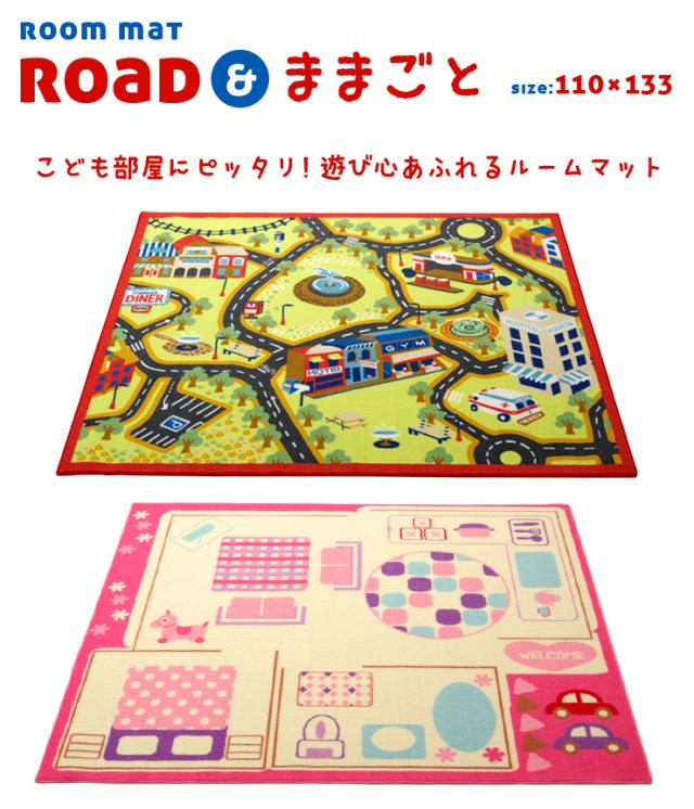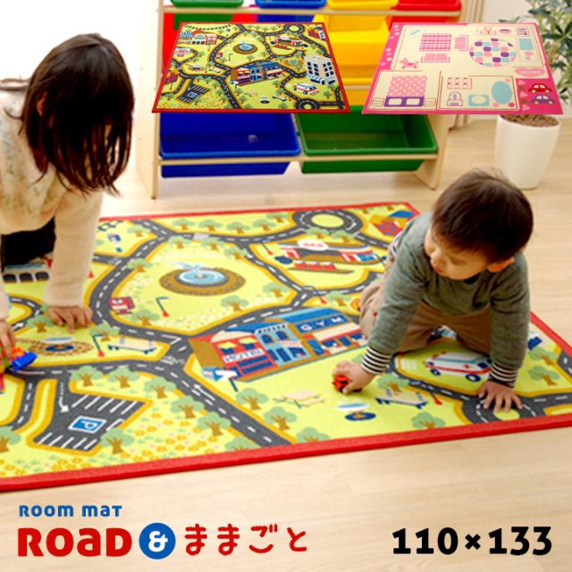 【遊べるカーペット/コンパクトサイズ】ルームマット ロード & ままごと 110x133cm デスクカーペット デスクマット ラグ カーペット 子供用ラグ 学習机用 学習椅子用 学習チェア用 おままごと