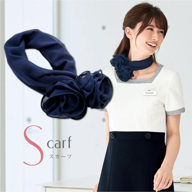 スカーフ コサージュ付き 花 アンジョア 事務服 制服 仕事服 オフィス 美容 医療 受付 クリニック 接客 サービス レディース 飾り ワンタッチ おしゃれ フォーマル 華やか 清楚 上品 enjoie jo-op154