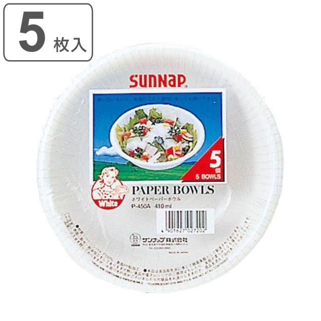 紙皿 使い捨て ボウル ホワイトペーパーボウル 410ml 5枚入 ( 使い捨て容器 皿 ペーパーボウル 5個 簡易食器 紙容器 どんぶり 丼 汁物 シンプル )