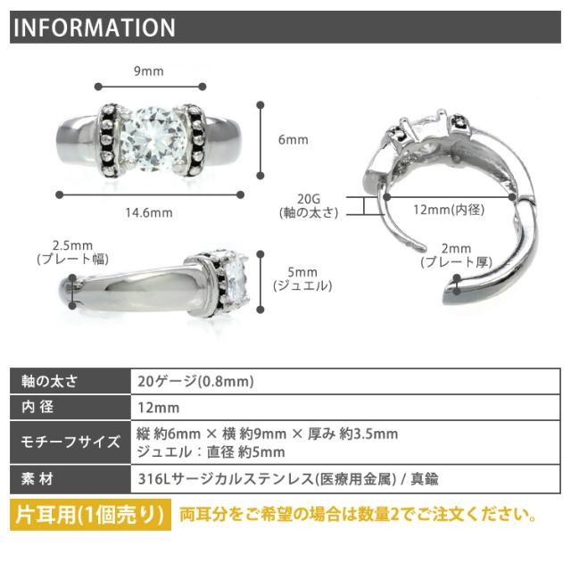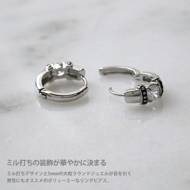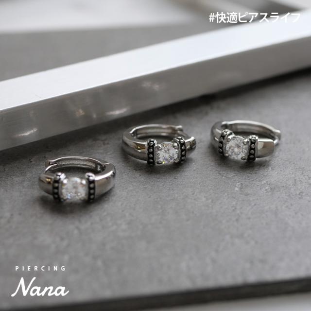 ワンタッチで装着できる便利なクリップリングから、大粒ジュエルをミル打ちで装飾したシルバーリングモチーフが登場。ユニセックスなデザインで、コーデをCOOLにカッコ良く魅せます。太さは一般的なピアスと同じ細さの使いやすい20Gでボディピアス初心者さんも安心。ワンタッチ式で着脱も管理も簡単。材質は、「316Lサージカルステンレス」の上にシルバーでコーティングを施してあります。耳たぶピアス以外にも耳の軟骨ピアスに幅広くご使用いただけるデザインですよ。