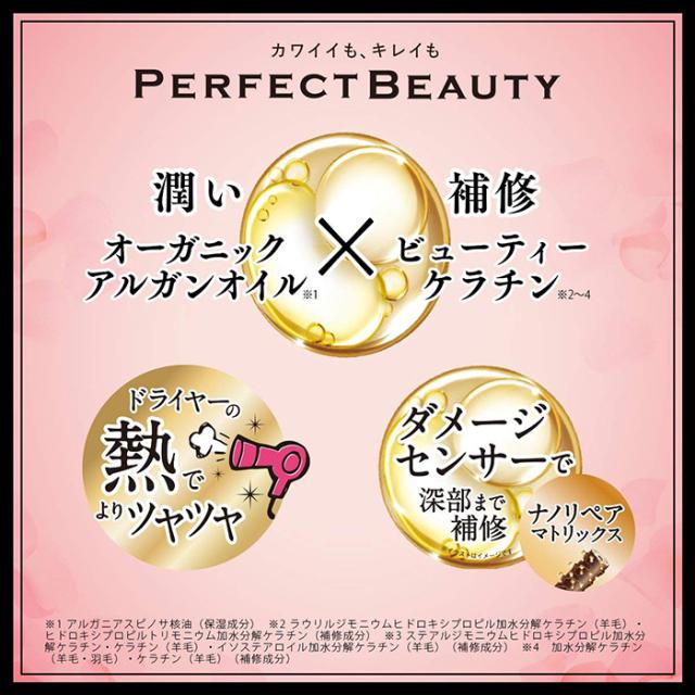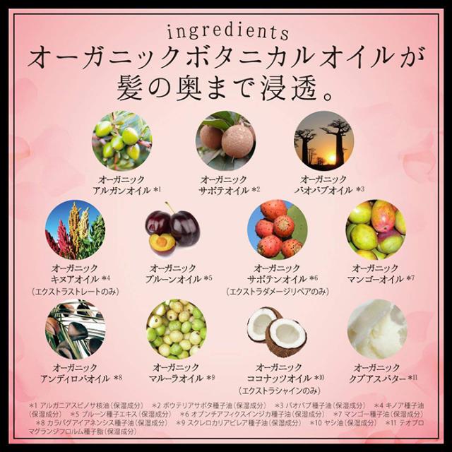 オーガニックアルガンオイル(*1)と独自のビューティーケラチン処方でダメージを補修。