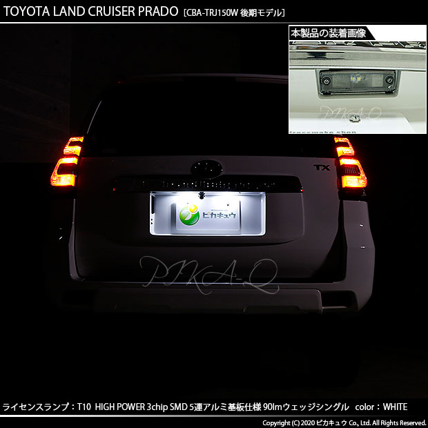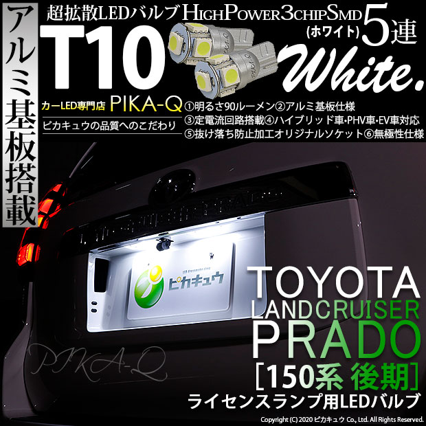 | ピカキュウ,LED専門店,LEDバルブ,LED,SMD,T10,W5W,T10 HIGH POWER 3CHIP SMD 5連ウェッジシングル球,アルミ基板,90lm,長持ち,ホワイト,ライセンスランプ,番号灯,トヨタ,ランクルプラド,ランドクルーザープラド,TRJ150W,後期,TOYOTA,LAND CRUISER PRADO,プラド150系,150系プラド |
