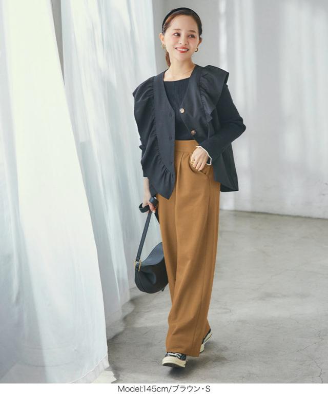 春新作 [ 田中亜希子さんコラボ ] S M]サイドジップとろみジャージーワイドパンツ M2748 入荷済 レディース 田中亜希子 ワイドパンツ きれいめ タック おしゃれ 大人 ジャージー 大人カジュアル 黒 40代 50代