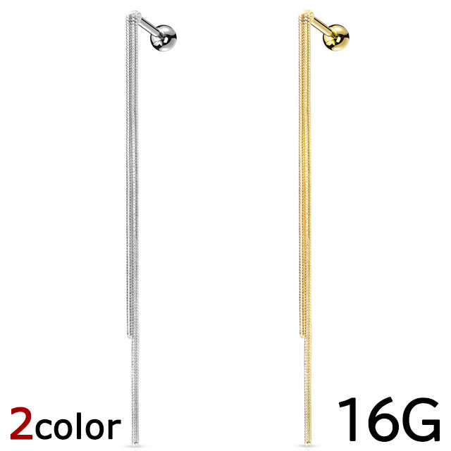 ダブル ロング チェーン ダングル ストレートバーベル 16G 【 軟骨ピアス シルバー イエローゴールド シンプル 】