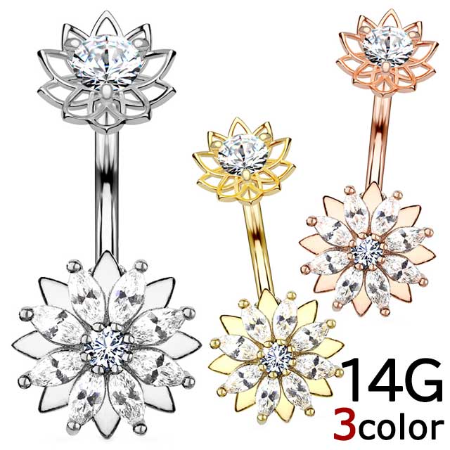 キラキラのお花が大人可愛いヘソピアス。