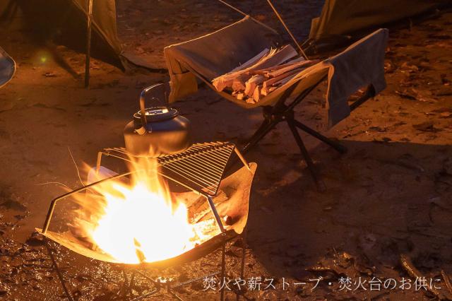 - キャンプで焚き火をする際の小道具として購入しました。地面からの湿気を避けるためにも必需品です。ソロキャンプの際にはスタンドは取り外してバッグの部分だけ持って行っていますが、それでも十分に機能的です。